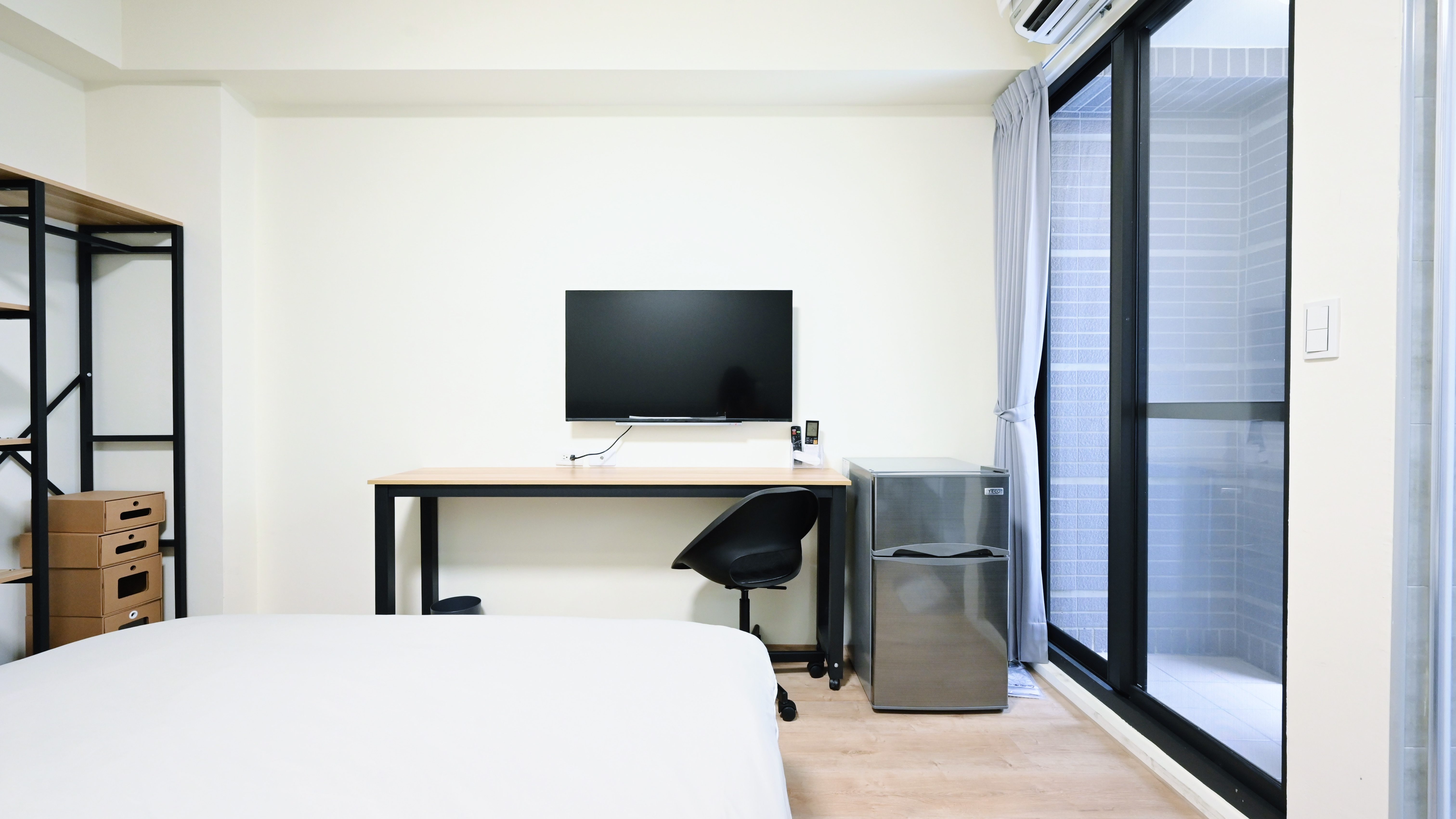 電視、衣架、冰箱、日式矮桌齊全的家庭設備,讓短暫的遷移無負擔。